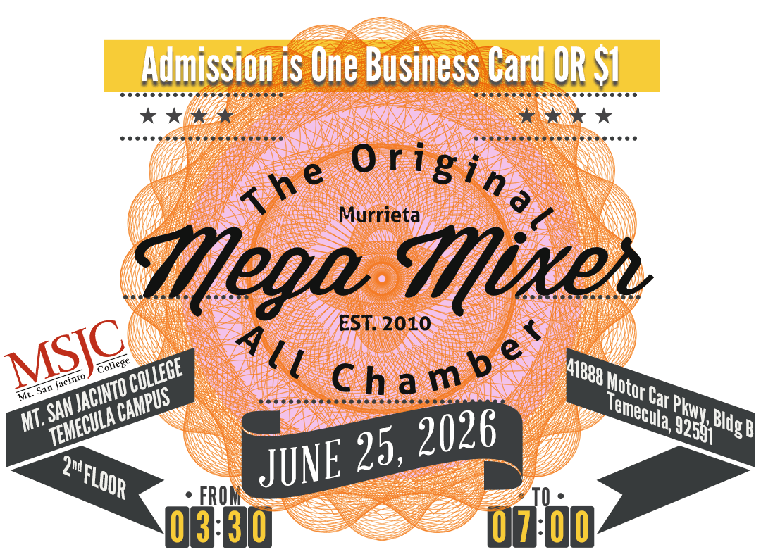 The All Chamber MEGA Mixer is a Networking Extravaganza powered by local chambers in our region working together to connect our business communities! This year, we’re excited to be back at Mount San Jacinto College! This is an exciting opportunity to engage with fellow professionals, foster relationships, collaborations, and potential partnerships within our vibrant business landscape.