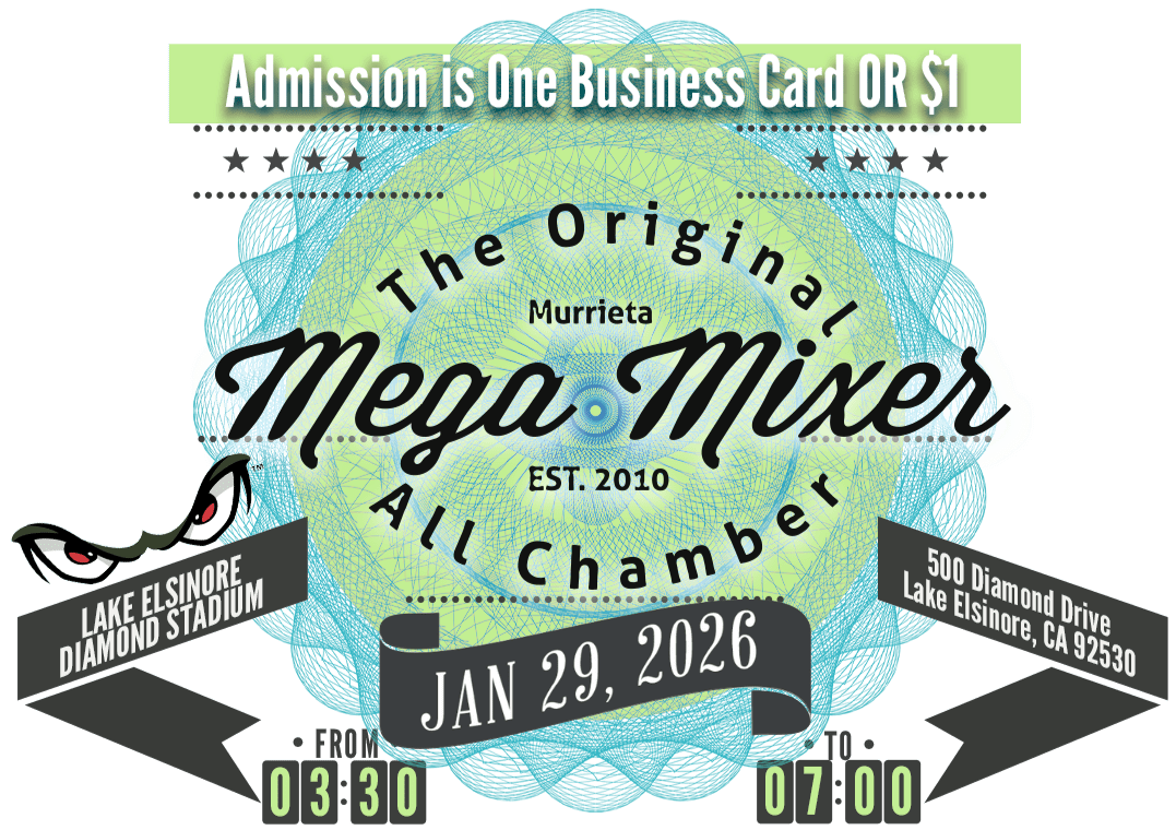The All Chamber MEGA Mixer is a Networking Extravaganza powered by local chambers in our region working together to connect our business communities! This year, we’re excited to be back at a fan-favorite location—the Lake Elsinore Diamond Stadium! This exciting venue offers an unparalleled opportunity to engage with fellow professionals, fostering relationships, collaborations, and potential partnerships within our vibrant business landscape.