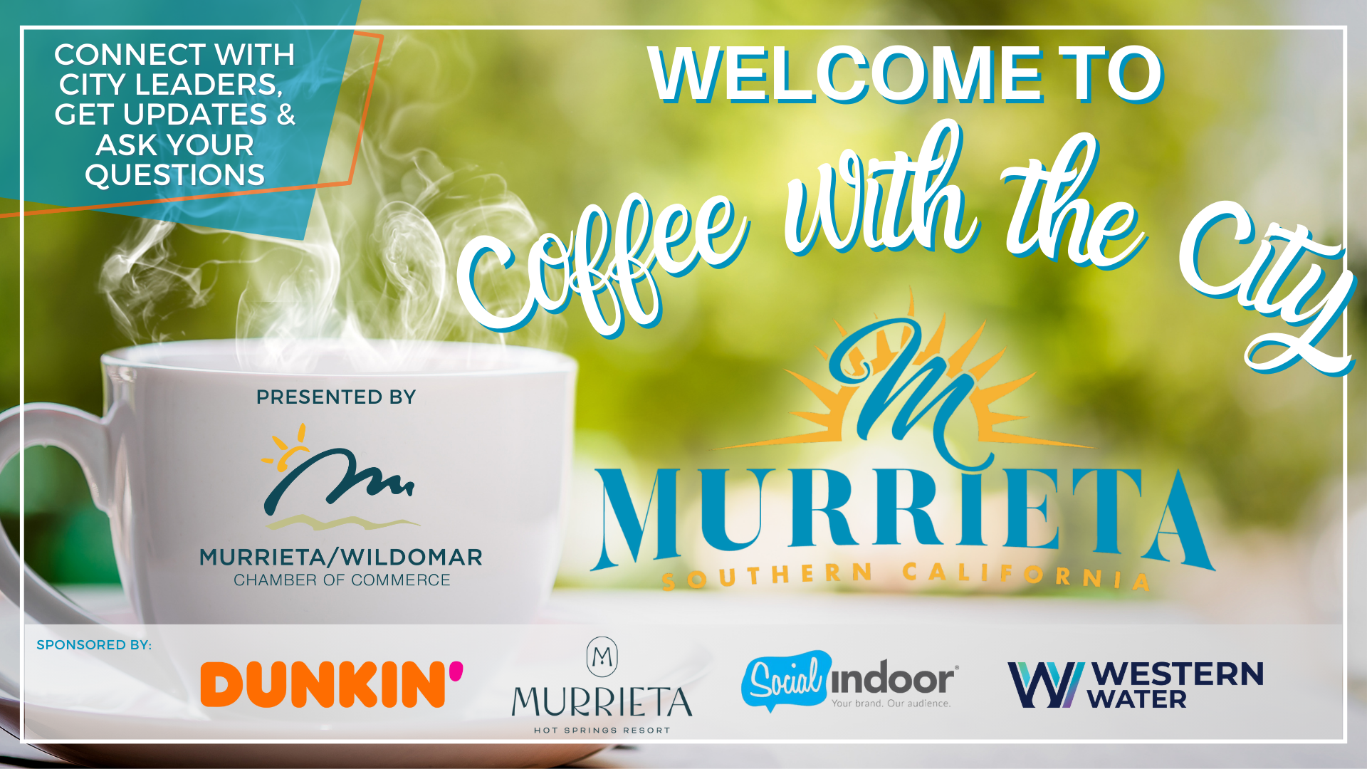 Are you looking to connect with your local community and engage with city leaders? We invite you to join us for "Coffee with the City of Murrieta," a monthly event designed to bring residents, business owners, and city officials together in a relaxed and informal setting.
