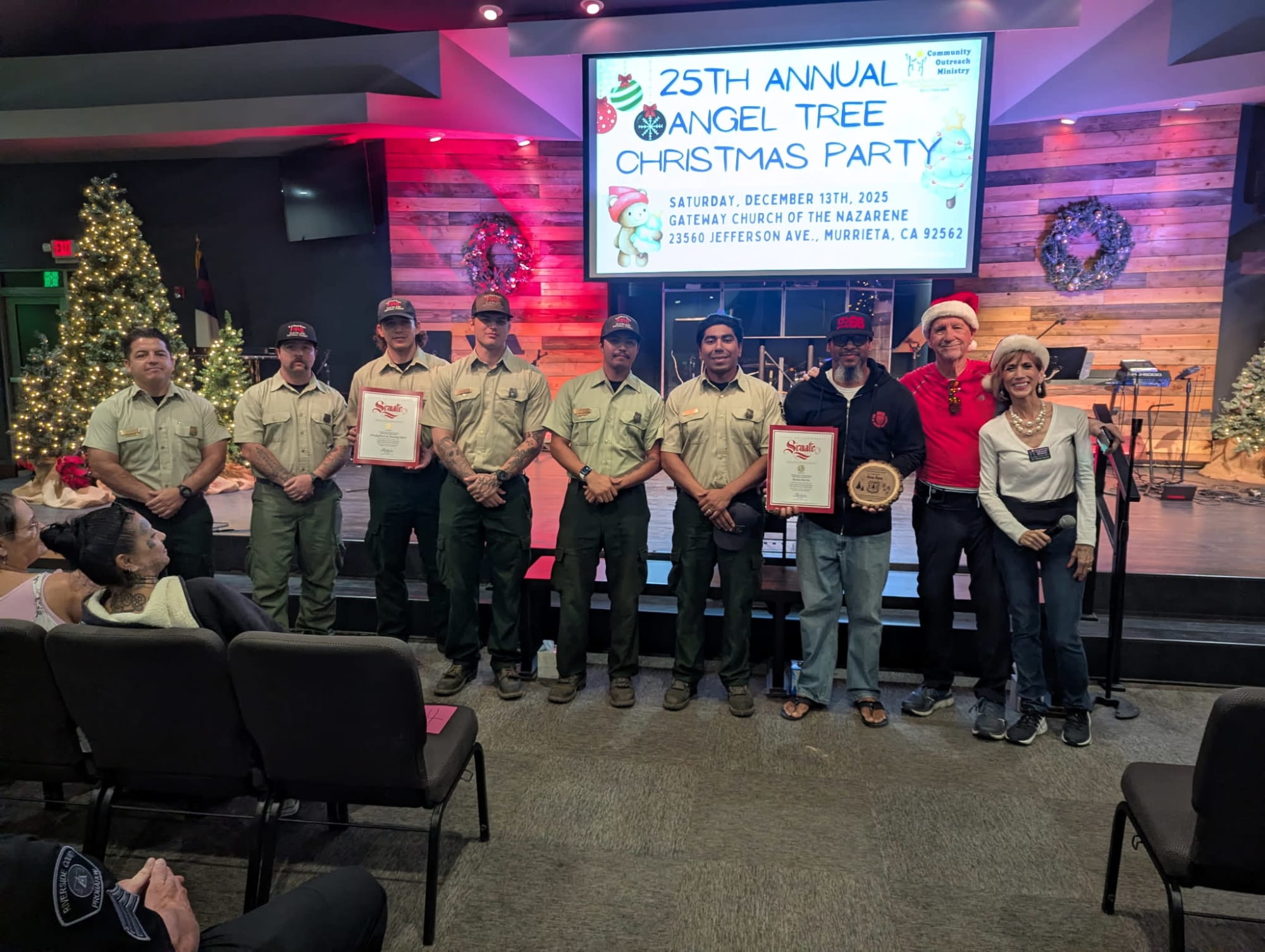 Murrieta, CA — On Saturday, December 13, 2025, Community Outreach Ministry (COM) marked a milestone moment with its 25th Anniversary and Angel Tree Christmas Party, bringing together families, youth, community leaders, and partners for a morning of celebration, recognition, and hope at Gateway Church of the Nazarene in Murrieta. COM is obliged to Pastor Cory Miller and Spanish Pastor Eliel and Renee Morales for furnishing us with the use of the sanctuary, parking lot, and church volunteers. Praises also to COM’s Angel Tree team Janice Hare for contacting the families year-round inviting them to on-going events for the families, Johnna Hose for registering families and Ankoma Hose for passing out gifts to the children.